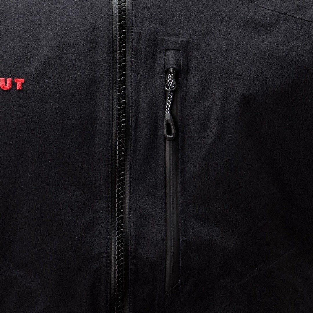 A waterproof front 2-way zipper enhances wind and water resistance, complemented by a waterproof chest zipper pocket