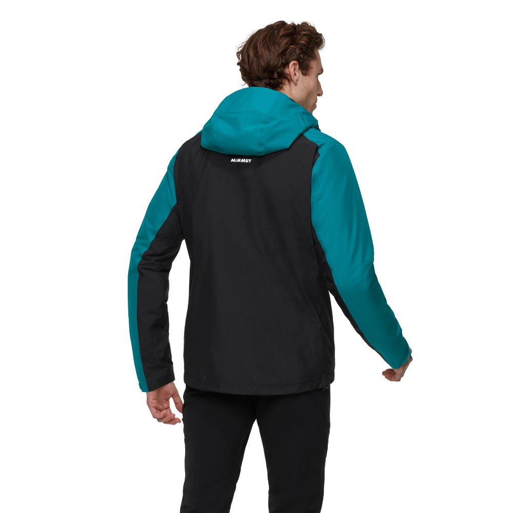 A versatile ally on the trails, this 3-in-1 jacket combines a 2.5-layer Mammut DRY waterproof hardshell with a lightweight insulated jacket for full weather protection and adaptability. Featuring two pockets, pit zips, and an adjustable hood and cuffs, the outer jacket has all essentials covered. The removable inner jacket with zoned Loopinsulation made from recycled rope production scraps adds warmth and comfort in cold conditions. Following the traditional layering system, each jacket can be worn together or on its own to best suit the conditions at hand.