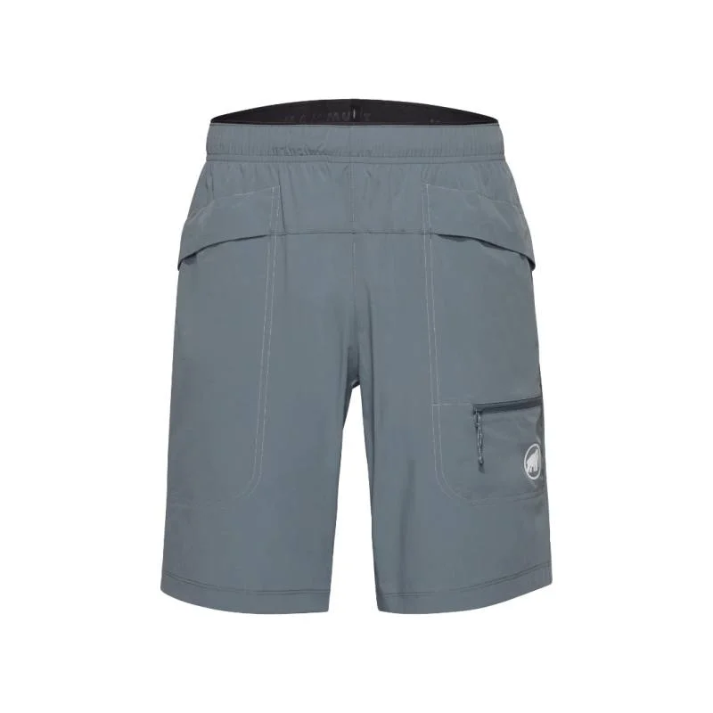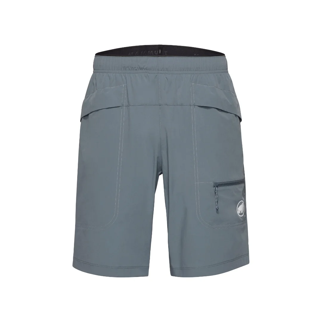 Designed for warm days on the wall. Made from a 87% recycled moisture-wicking fabric that is light and durable, these shorts stand up to abrasions while keeping you cool and dry. 4-way stretch offers unrestricted movement and distraction-free fit. Two deep front pockets with covered flaps allow items to sit underneath your harness leg strap for added security. An elastic waistband with drawstring creates a customizable fit for all-day comfort. Tested and backed by Mammut athletes Adam Ondra and Jakob Schubert, the Sender Climbing Shorts are ideal for climbing in summer temps.