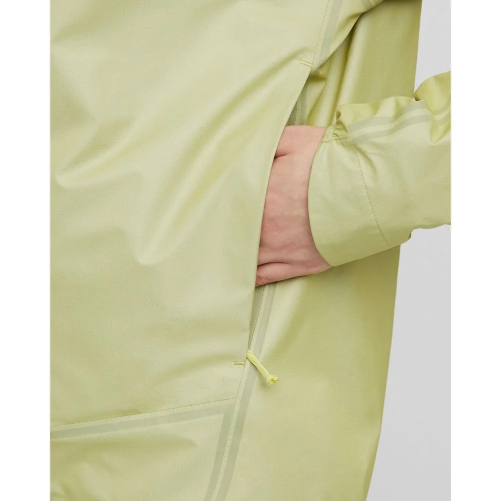 採用 15D GORE-TEX 三層面料,提供高度可靠的防水保護性能。外套可摺疊收納至專用收納袋,體積細小方便攜帶;配備反光標誌及胸前印花設計,有效提升黑暗環境下的可視性。