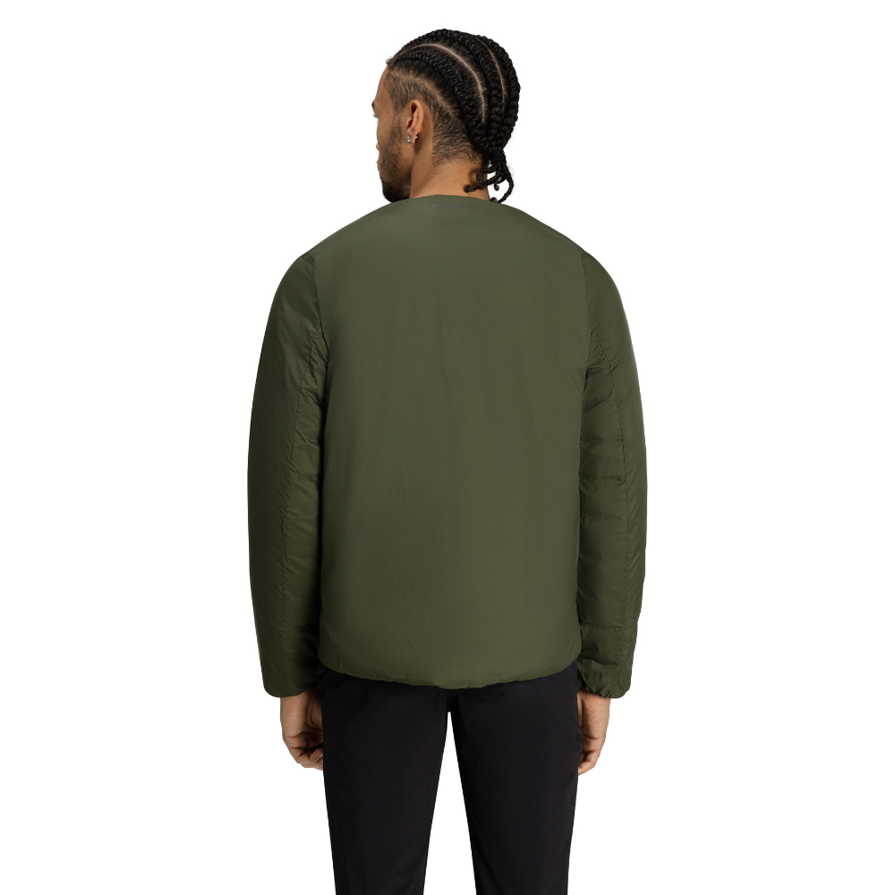 日系亞洲限定款Seon IN Cardigan AF,採用輕量透氣又放潑水的Pertex Quantum Air材質,內裡填充750FP的保暖鵝絨。無領的開襟衫設計延伸頸部線條,展現乾淨俐落的都會風格,加上雙面可穿設計,能當外套或是中層穿著,是一款實用又百搭的單品。
