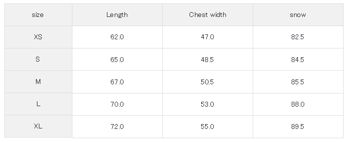 尺碼對照表