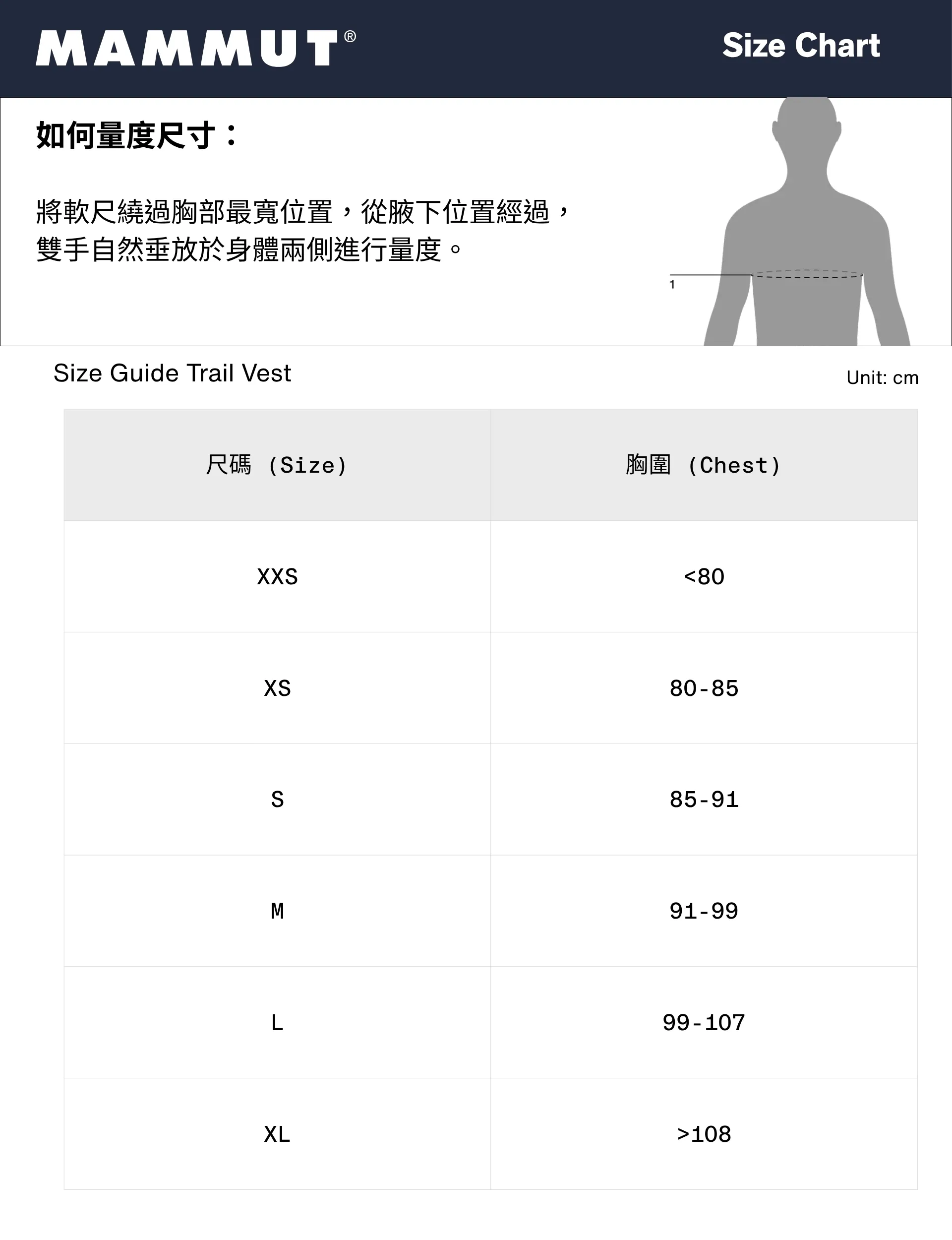 尺碼對照表