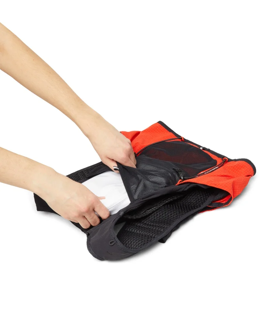 12 公升容量配合多個收納口袋,包括背部通道式口袋,方便在行進途中快速取放軟水樽、能量膠或外套等裝備。